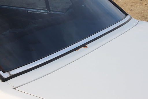 some small surface rust spots, and an area of cracking clear coat. Could use a paint job.