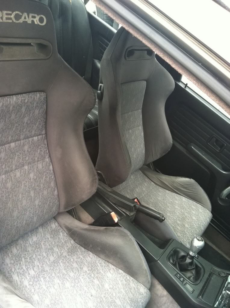 These will be great seats for the right person. I just had back surgery so they aren't really comfortable for me. I bought the car with them and thought that I was just going to recover them. Since I have gotten the car back from the paint shop I have been driving the car and it is just really hard for me to get in to. Lowered car and really low seats=bad for post op back patient haha. Looking to get $600 plus shipping for them. This includes the sliders. I am assuming that they just have 4 bolts a seat to get out. I haven't checked them out yet. There is another post of these seats listed for $1800 recovered. I got an estimate from eurotrim that these seats would cost $300 to recover. If you have a decent set of sport seats, M3 or different recaros I may consider trades.
