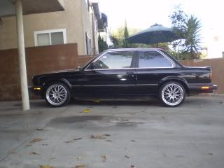 1986 325es schwarz $1000 bucks takes it away.odometer broke. wing. tan interior (out of car) , hr sport springs, bilstein shocks. 5spd but selector rod fell out. 2 sets of wheels (black borbets 1 flat tire) and (bbs looks alikes ..1 bent rim will need fixing and hubcentric spacers), dtm style muffler. PO did some weird ass wiring. $1000obo