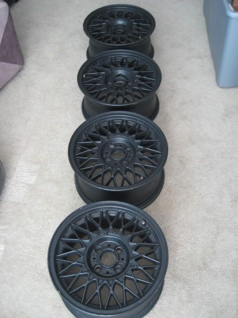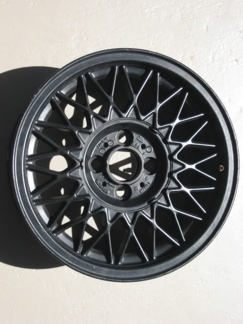 Four Euroweaves for sale, painted black. I bought these along with my car from the previous owner. My intention was to use them for track rubber. I have since discovered that due to my car being a 24v swap, I am not able to compete in anything remotely stock classed, so thus I would be better off with a wider wheel. I am selling these to fund a purchase of some 15x8s.