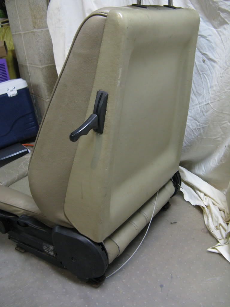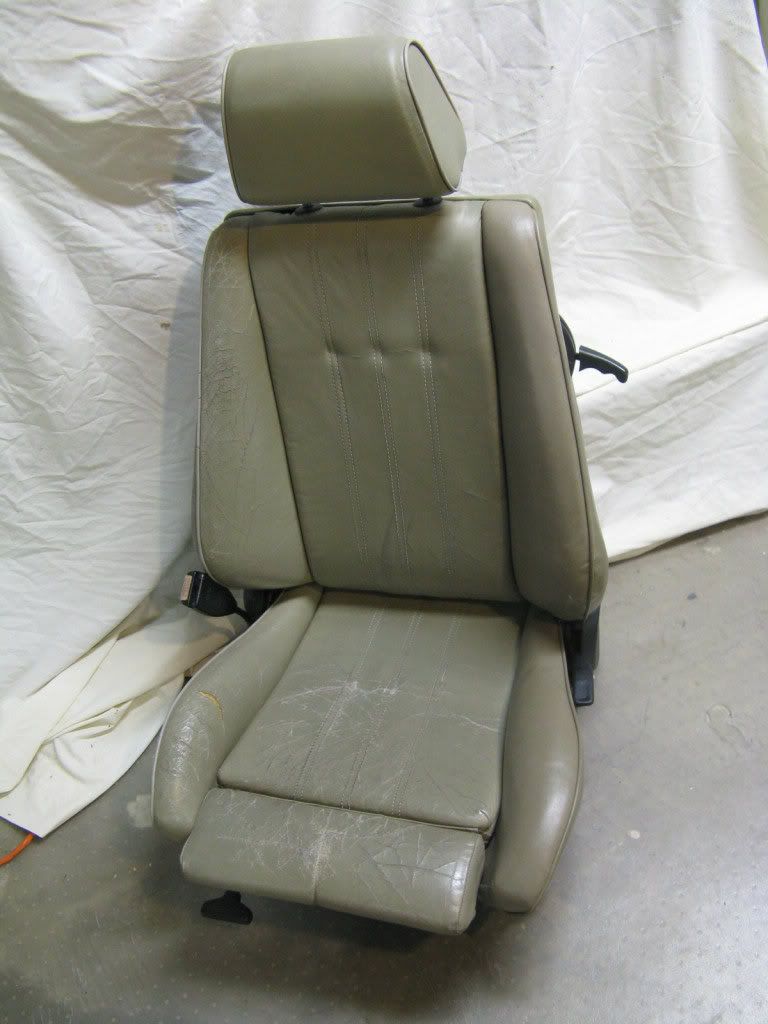 Driver's side sport seat in tan leather, pretty rough shape (see pics). Needs to be repaired- the left side rail on the seat bottom is snapped.