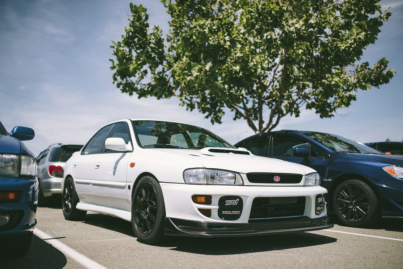 2000 GC8 2.5rs in Alpine White, 4 Door. It has a USDM EJ257 STI Complete Engine & Drivetrain Swap (uber fun swap...). Shes not a show queen, but does clean up well, and is fun in the twisties. Has roughly 100k on body, & engine mileage is unknown, but compression/leak of engine prior to install was good, and was minor refreshed (gaskets/seals/general maintenance) before installed.