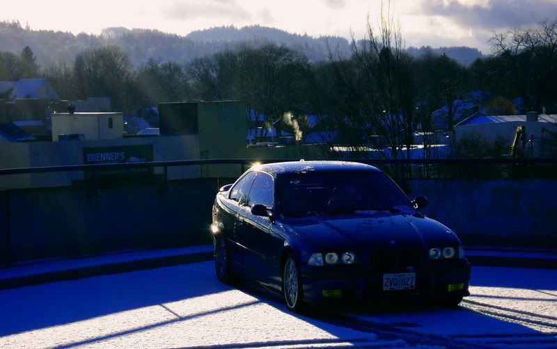 Couldn't make it to class in the morning at 8 because of the snow/ice. We get weather like this maybe once a year tops, so the city is not very well equipped to handle it. Not much was going on this afternoon as a consequence, and I got photoshop yesterday, so I headed down town to a parking garage once the main roads were clear. This was the result of my first "parking garage" shoot. Car is dirty, but some of the shots came out OK.. thought it was fun to shoot somethin in the snow as opposed to the sun! I'm starting to tinker with the different settings on my camera to get some better shots.
