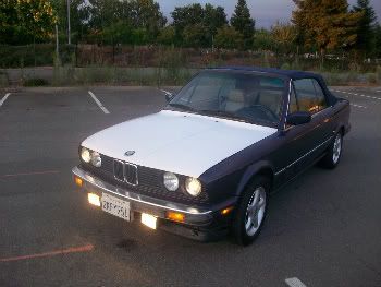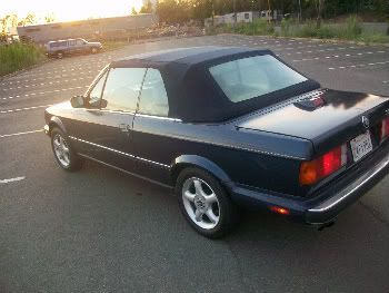 I am selling and 88 E30 Convertible, the car is in fair condition and runs great. The car will not pass smog because it needs a new catalytic converter. I hear it is common with older cars especially when they have 233,000 miles on them. Their is financing available to get your car ready to be smogged. Though the smogging of the car will be up to you. I have done a lot of work to the car within the last 6,000 miles; I have replaced all four tires(2,000 mls ago), the idol censor, the head gasket, a new front rack unit was installed, a rebuilt transmission and torque converter (approx 100,000 mls on them) and the timing belt was replaced right before i purchased the car last year. I do have all the receipts. As you can see in the pictures the car is fairly clean, the front interior has a few tears but is in working condition. The back seat is in great condition and was just replaced because the original was sun worn and falling apart. The car has a pioneer cd player installed and all the speakers work fantastic. The top is about 3 years old and very well taken care of, the back window is still see through!! The paint on the car is in good condition with a few clear coat problems and few scratches. As you see the hood is a different color. I just got a new hood for the car because someone backed into my car at work and i can not afford my deductible. If you put a decal on the hood it will look awesome and sporty.