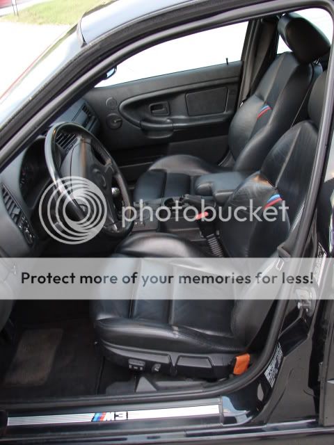 98' E36 M3 Sedan 3.2L 5 spd manual, Cosmo black on Black leather, Staggered contours w/ Michelin Pilot sport tires, 177k ALL highway miles (P.O. drove over 100 miles to work everyday). Ipod Cable in place of Cd changer (Changer is included with car). Car is in Great condition inside and out. Completely stock except for Bilstein sport shocks and H&R Race springs (just installed recently). Always used Mobil 1 Synthetic. I have some maintenance records from PO but not all. Only thing wrong with the car is a broken passenger turn signal cover and a small dent in the driver fender (as seen in pics below.