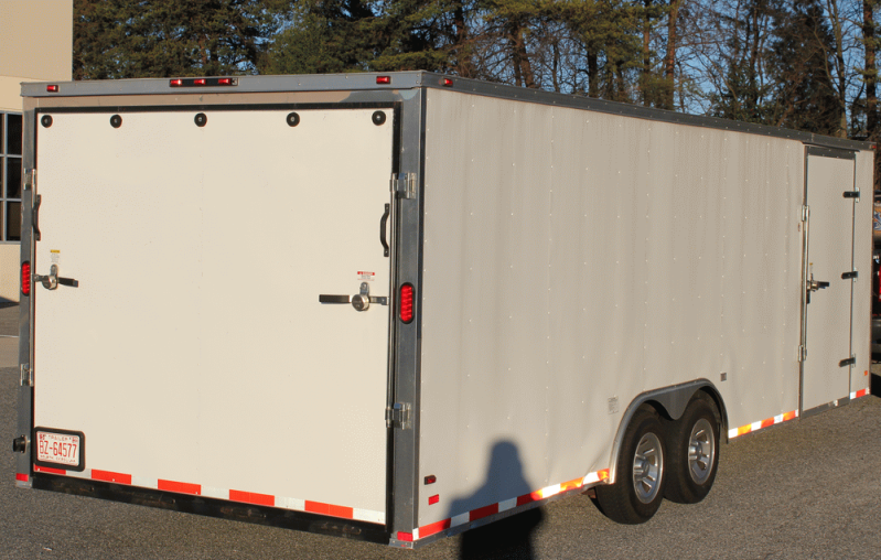 It has multiple tie-downs installed inside the trailer by a professional trailer company that are adjustable for bikes, or different size cars.