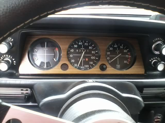 Overall, the interior is in 8.5/10 shape. The front seats have been restuffed with foam and reupholstered. The rear bench has not been redone yet. The dash has some cracks but is still in very good shape. The gauges all work (aside from the odometer). The carpets are in great shape.