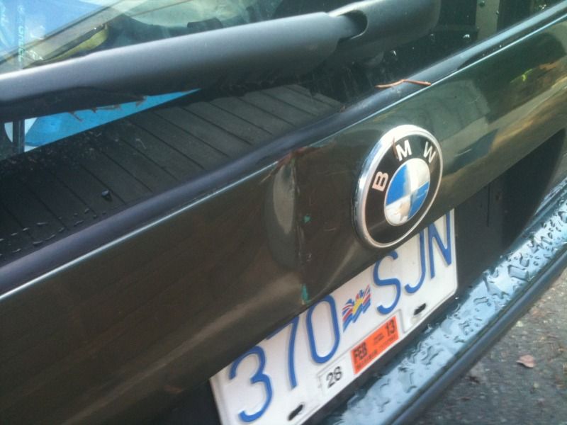 couple dents around the car, nothing too major except for the tailgate. 4 inch vertical dent about 1/4inch deep. more like a crease. can be fixed if you are that guy. Id rather just spend $500 on a new tailgate. bimmerparts has one.