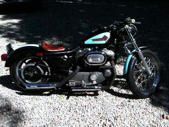 MY bike a 1993 sportster 1200xl with some bobber mods. First of the bike has a little over 13,xxx miles. Mods include bitwell solid rear struts, progressive front lowering springs, drag bars, rich phillips solo seat. hugger kickstand for the lower ride height. Ive never seen this stock paint sceme so i dont think its to common. right now the rear blinkers are removed, along with the front ones, and the speedo. There are some extras that come with the bike that are not installed, smaller rear blinkers, small speedo, spoked rear wheel, new hand levers. I bought this bike not long ago to make a nice little bobber out of it. (i havent even registered it.) But realized i want to put more into the car im building, so im gonna put it up forsale. Comes with stock parts.