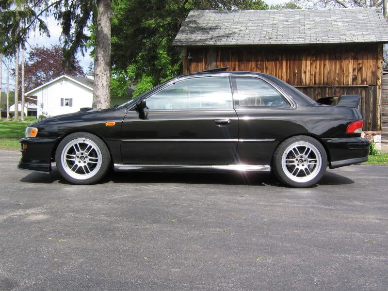 Just about all the moldings were dry rotted really bad. so since i was going to be replacing them i decided to paint the car as well. The color i went with is java black pearl. '04 STi black.