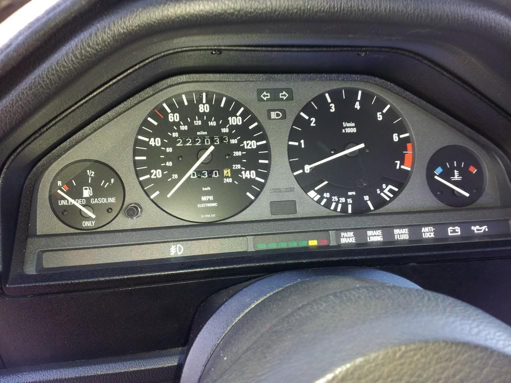 The brake lining light is on. I inspected this and it looks like the PO didn't replace the brade pads with the sensor kind. Also the check panel on the roof has the Air bag light on which is my fault because I replaced the original steering wheel with the sport one. I still have that steering wheel that will be included with the car. All other lights work and exterior lights.