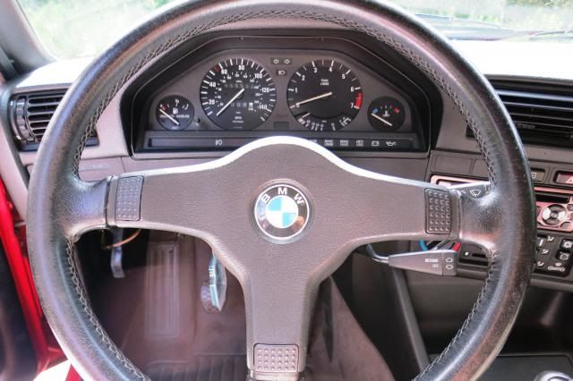 - INTERIOR: I installed a MTech 1 steering wheel, redyed the rear parcel shelf, installed a different headunit, dyed the door panels (all), put in cleaner carpet and did a general deep cleaning. There are a couple small cracks in the dash but nothing major. The seats are originally out of an Acura RSX and look good. I may or may not dye them black before selling but they look good and are comfortable. The driver's knee bolster is missing. All switches work as they should but the AC does not work (aux fan still comes on when pressed though). The heat though works very well. The odometer quit working and I have not had time to change the gears yet. The sunroof and rear windows are manual.