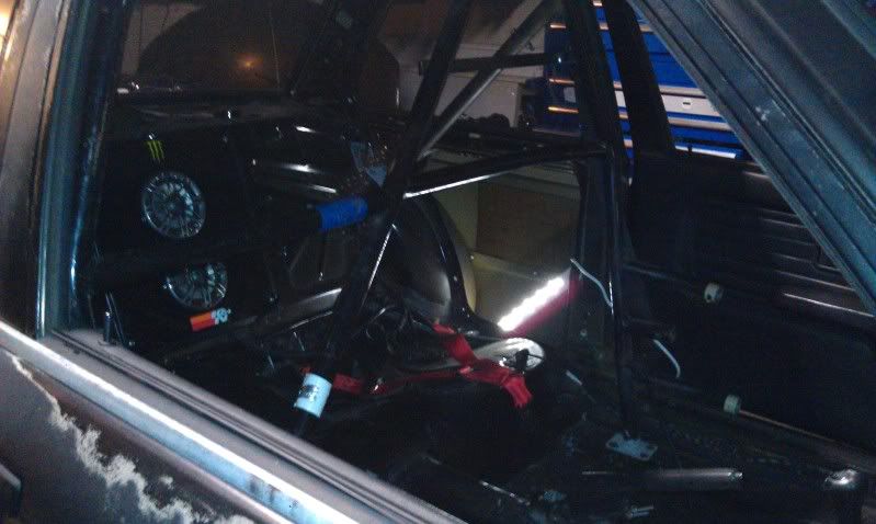Pretty much gutted. Still has dash and front door panels. Head liner, carpet, rubber sound deading, rear seat and panels have all been removed.
