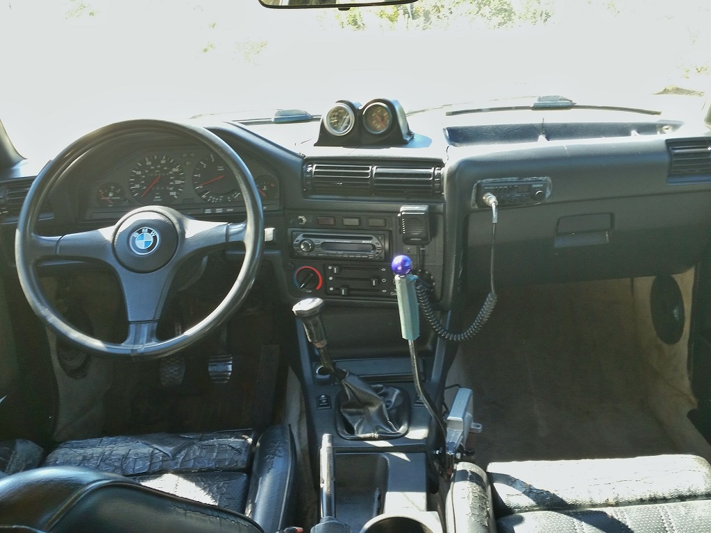 325 front strut housings with vented rotors, 325 rear disc brake conversion, 325 convertible front springs with custom spacer to increase height and rate, 2 to 3" lift, E36 325 rear springs, medium case 4.10 limited slip differential, new lifetime warranty Gabriel Ultra shocks, steel braided brake lines, Ireland Engineering subframe bushings, Ireland Engineering trailing arm bushings, Moog ball joints, E30 M3 control arm bushings, Raceskidz skid plate, CNC hydraulic e-brake, Hurst Mustang 5.0 shifter, electric fan conversion, high mount intake with mushroom filter, Racetep long tube header, high mount off road exhaust with v-band, US ellipsoid headlights with HID, Motorsport Hardware wheel studs, 10mm wheel spacers, E32 735i booster and master, and spare tire tub removed.