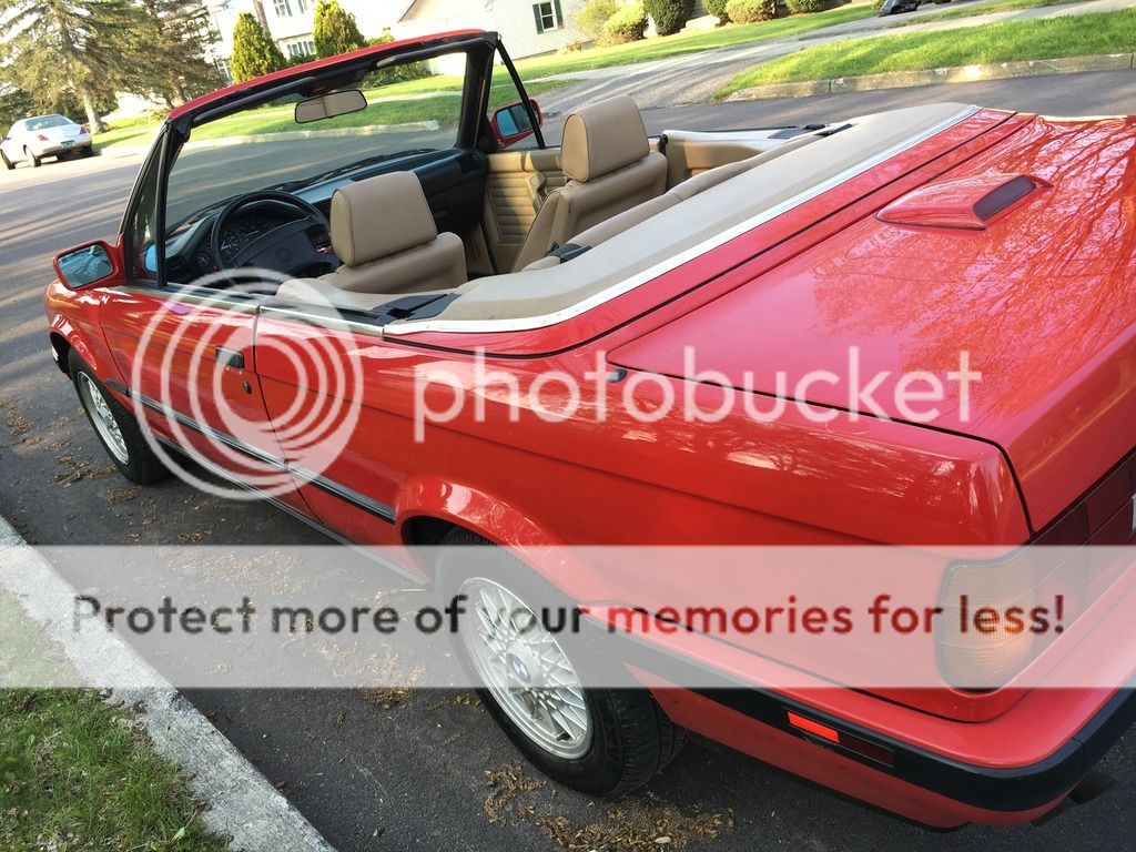 I am selling my 1992 BMW 325i Cabriolet, the car has beautiful Brilliantrot Red paint with a tan sport interior, and a 2.5 liter straight 6 cylinder engine with a proper 5 speed manual transmission. The car has only 138,000 documented miles and has spent the majority of its life down south in Mississippi and Alabama. This car is garage kept and has never seen a winter or snow. I have a clean title, clean car fax, a big folder of paperwork including service records and original manuals for the car.