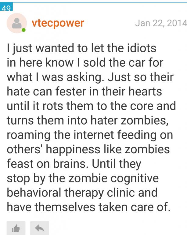 Beyond that, you appear to love attention. Negative or positive. Most likely because you didn't get enough from your parents, or women, or whatever other void there is in your life causing you to run around on the internet and post negative commentary into honest people's threads. Maybe you just enjoy harassing others. Here are a few examples of posts I see you making: