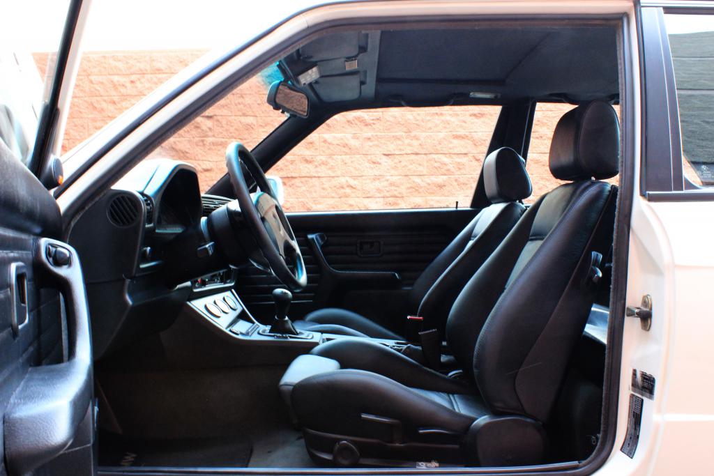 Finished in Alpine White, the paint is in excellent condition. There are no dings, dents or other imperfections except for an extremely small chip on the driver's door. Small stone chips are present on the front valance and leading edge of the hood from normal use. The CARFAX is clean and consistent paint meter readings show no evidence of any paintwork. There is a two-stage carbon fiber wing installed but the original classic M3 deck lid spoiler is included. The OEM checkered flag decals from the E36 M3L are in good condition and can be easily removed.