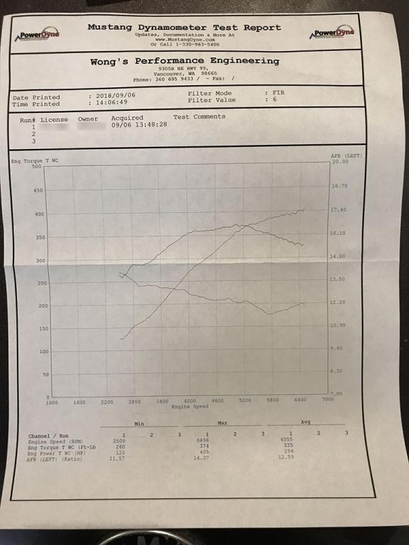 The car was tuned by Tom Wong of Wong performance engineering. 406whp/374wtq on premium pump gas.