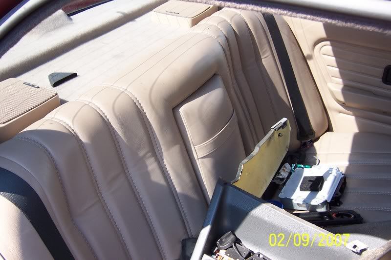 As you can see it's super cool calypso red, with REAL NICE non-sport tan leather, including rear seat armrest. The interior is somewhat apart, but mostly all there. thats the way I got it.
