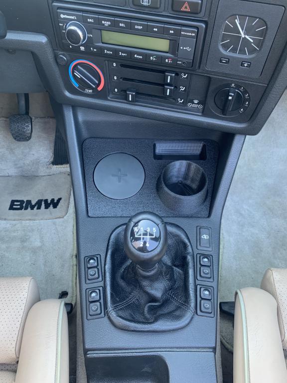 I am really proud to debut and offer this E30 Qi charger + Cup Holder + Coin Tray. This will fit all left hand drive E30’s. This has been an absolute labour of love over the last 6 months. It’s a completely reversible plug-n-play option to your current ashtray.