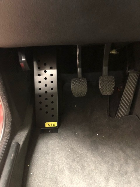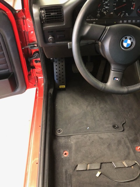 This is a Reproduced Original Dead Pedal. It is aluminum CNC machined - 24 punched holes (not embossed). Finished in satin powder coating. Fit in a '88 M3 today - $150 shipped.