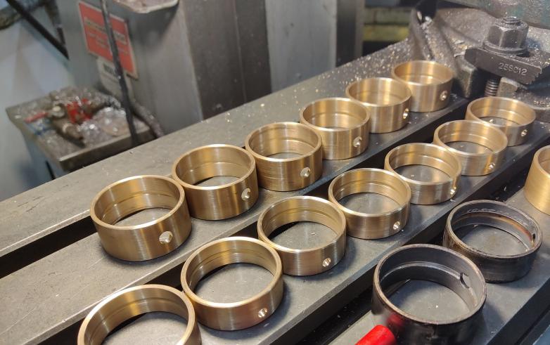 Intermediate bearings have been becoming rare, specially the inner (have been NLA with no ETA for several months), so I decided to make them from 932 bronze. Went ahead and bought a length of material (was quite expensive) and used it up to make as many sets as I could. 932 (aka SAE 660) is the same material used in wrist pin bushings, rocker arm bushings, and in fact was the go-to choice for auto makers for cam shafts etc before babbitt became commonplace.