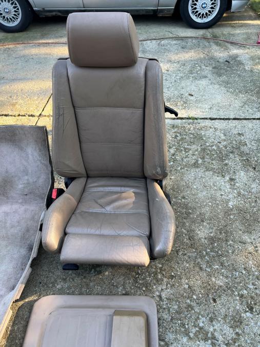 For Sale 325is full tan leather sport interior, front seats are convertible stitching. Everything needs a good cleaning. Seat backs are not broken, but could use new shocks. No rips, but worn leather on the front seats.