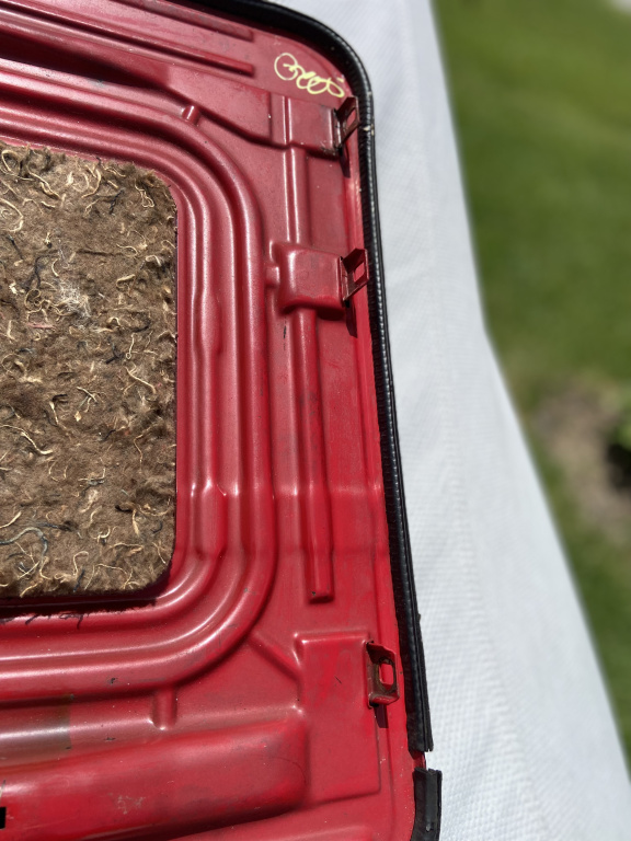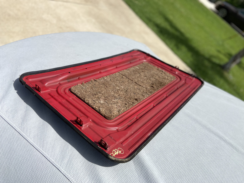 No rust on the mounting points, the panel is wrapped in black vinyl and the gasket doesn’t completely wrap around the panel. $150 plus shipping.