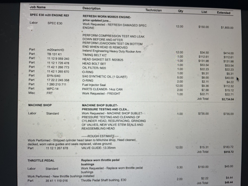 Original BMW M20 2.5l engine from a 1987 325is. We bought the car with around 175000 original miles and the engine ran pretty good for a while...after 3 time trial events we had it refreshed including rocker arm update by Valley Motorwerks/ Kontrolle Engineering in Rancho Cordova CA (receipt over 4k available in my name). It ran great but compression went down again after one time trial event so it will most likely need a bottom end rebuild as well. We are building the car for unlimited class and will do an engine swap with a different motor so we don't need the M20 anymore. We will pull the engine within the next weeks so it will be available for pickup soon however if you're able to pull yourself (most is done just get it off mounts and transmission) we can consider this and we can help as well...serious and realistic offers only please...