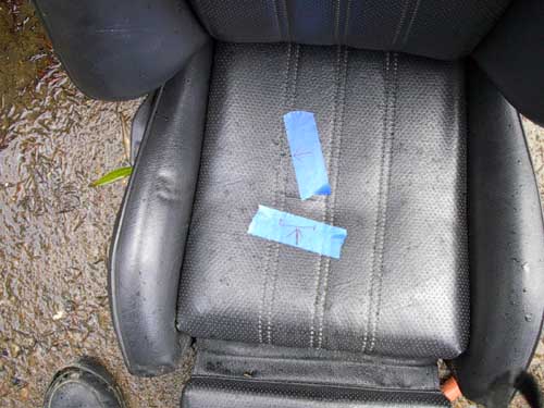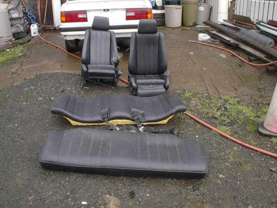 vinyl. driver seat is worst, but better then many out there, rest are very good. no typical cracks in back seat upper
