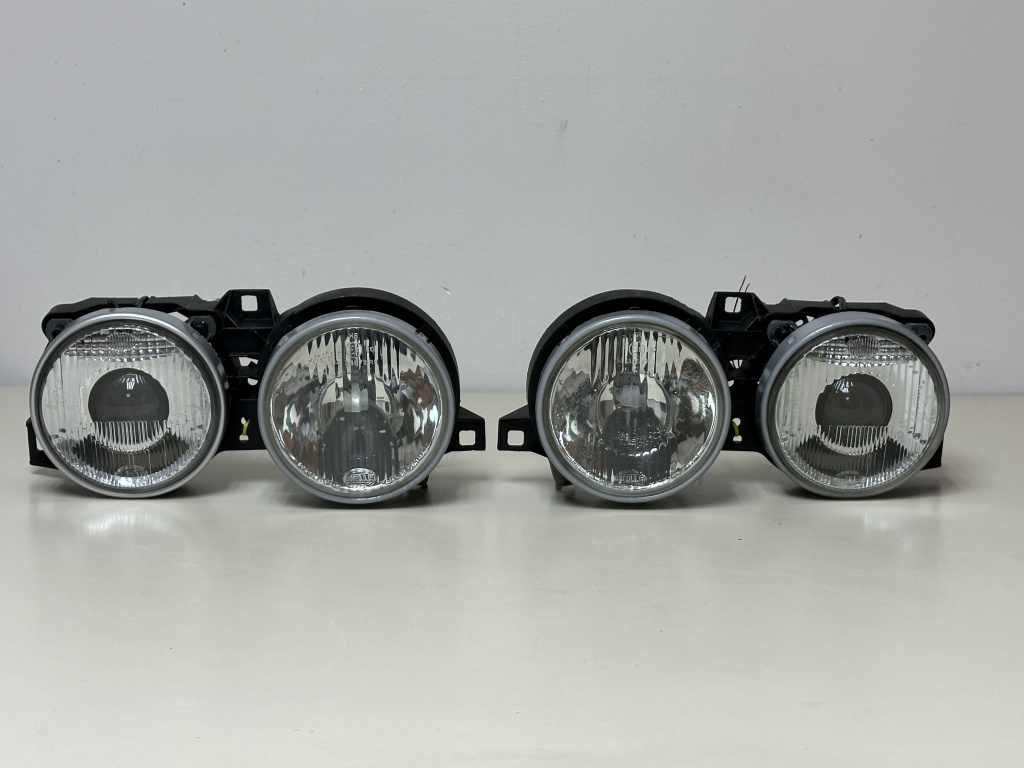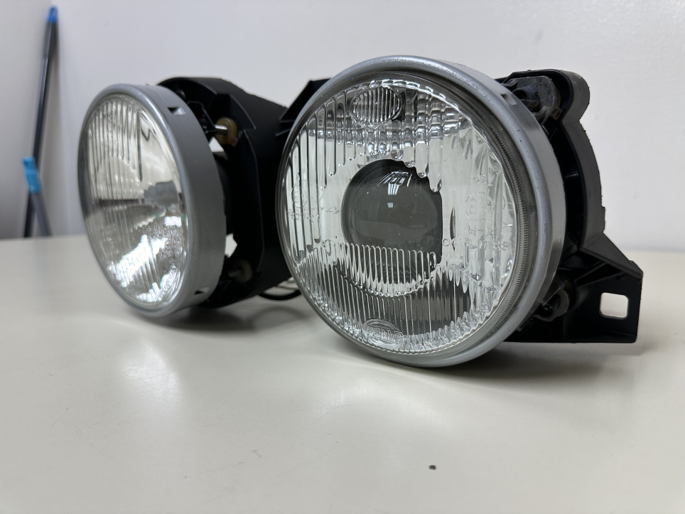 Up for sale is a set of fully restored e30 Hella Euro Ellipsoid Smileys . They are in excellent condition, with 99% of pitting and scratches removed. Frames are refinished in stain black. Silver refinished rings. New adjustment screw bushings installed. Refinished adjustment screws. Pigtails included. Price is $450 shipped