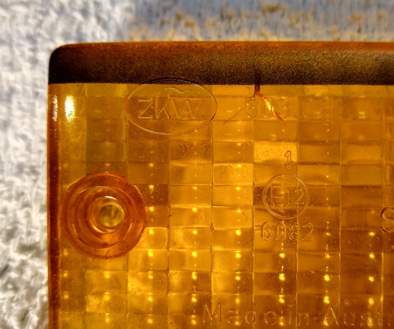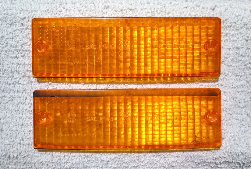 A matching pair of late-model amber ZKW turn signal lenses (63131386011).