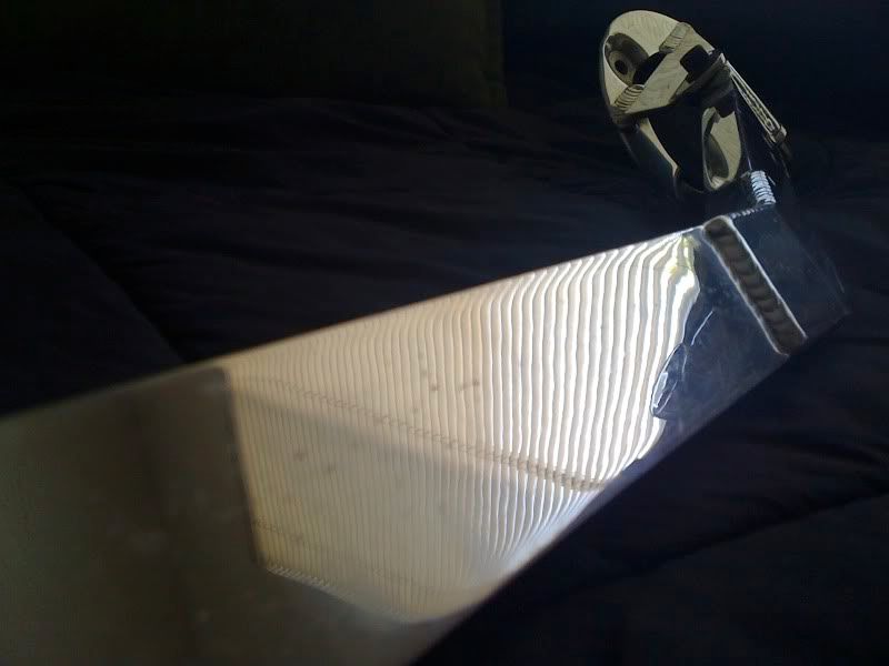 It is in good shape. No cracks or bends. Some minor scuffing that can be sanded and buffed out. The pictures show the worst of the scuffing on the top. There is a little bit more marking on the bottom where the intake manifold had bumped into it. $100 takes it