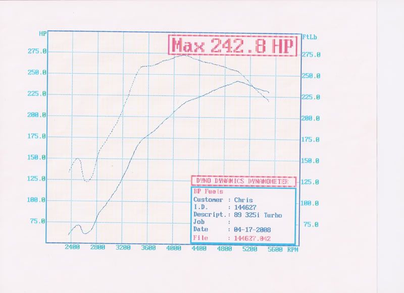DYNO graph when parts were installed on stock M20B25 (325i) at 10psi: