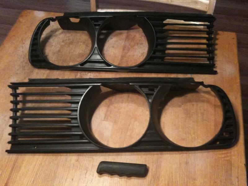 I've got a set of grills that are just sitting, and I'm trying to get funds together for a rebuild (an M52 crank is involved). They are in ok shape. I repainted them satin black about a year ago with SEM. The passenger grill had a small crack in the upper left (when looking from the front of the car) that I fixed with a high strength epoxy.You have to look hard to see it, and it's covered when the hood is closed. Also one of the clip locations is snapped short. Doesn't effect mounting at all. I just want to pass these on to someone, so $25 shipped. I'll even throw in an ebrake handle cover thing that I found when digging out the grills.