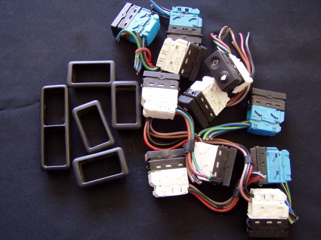 I have at least 10 E36 window switches and they are $15 each shipped. I have a few of the plastic trims for them for another $2.50 each