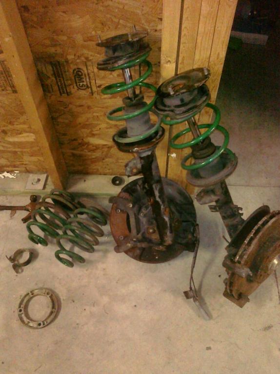 I have the whole front setup that includes the vented brakes and tein s-tech springs. One the strut towers looks to have a slight bend. It still has inserts in it, but never checked out what brand they were.