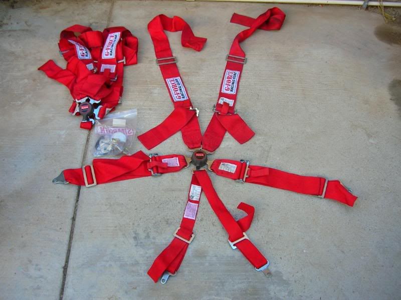 Gforce 6 point harnesses (pair), red, camlocks, mounting hardware. Expired date, great for HPDE, time trial, auto-x. $100