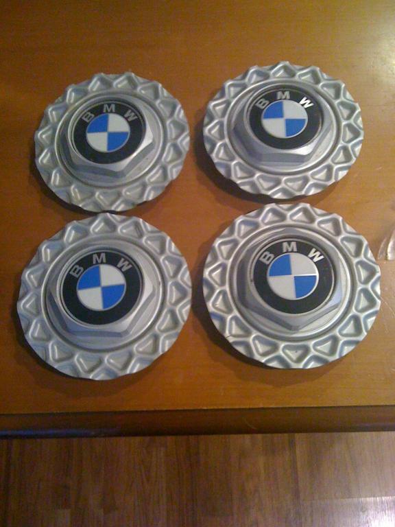 I have four BBS center caps for 14" basket weave wheels. These are silver and are in very good condition. I would prefer to sell as a set but perhaps would break them up if necessary. I also have one additional in the darker gray color. Its not pictured here.