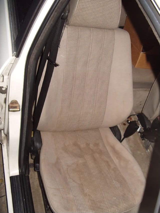 I'm selling my houndstooth seats I've got in my car. I've been using them for a little while and they're quite comfortable. I've cleaned them with soap and water, which helped a whole lot, but I've had some trouble getting the coloration out. It seems to move, because of the way it dries. A detailing place told me that those marks will come out with a steam cleaning.