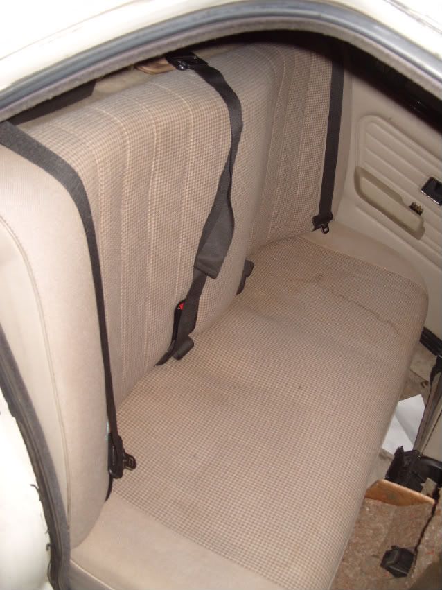 The back seat is in excellent shape, and much lighter weight than any leather ones I've held. I'd say it weighs less than 1/3 as much as those with the metal frame. One more water mark that should easily come out.