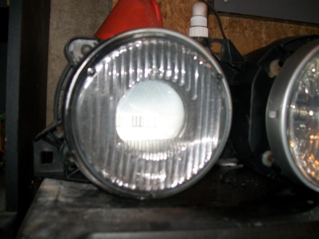 a set of ellipsoids in fair shape. the lenses have normal pitting but are in good shape. the adjusters work but not with the plastic pieces on the end. you can turn them with a pair of vise grips. if i sprayed them with wd40 and worked them back and forth they woould probably work fine. one of the high beams have a little crack in it. i took a pic of it. the right ellipsoid has a broken tab. its the bottom right tab. you can see it in the pick theirs still enough their for it to rest on. i'm hoping to get $120 SHIPPED. pm me thanks