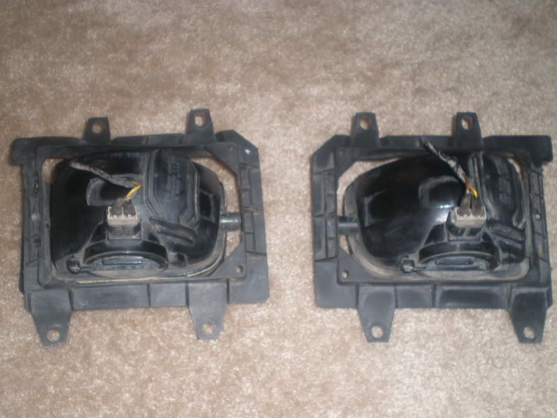 Newer style Foglights No broken tabs, includes bulbs and pigtails. I also have all of the screws available for mounting. Lenses are pitted but gaskets are in good condition.