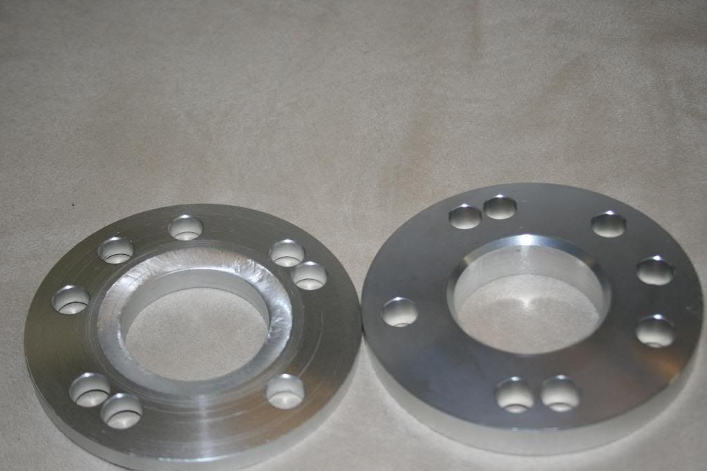 I recently bought these spacers for my ronals but i measured incorrectly and they won't clear my calipers. (Forgot to take in to account the corrado rotors have a thinner hat.) These are dual drilled 4x100 and 5x100 so they will fit VWs as well. They retail for $48 shipped for the 10s and $58 shipped for the 15s. $45 shipped for the 15s. I changed the internal beveled edge on one of the 10s to make up for the lip on the corrado rotors. i did a pretty decent job and does not effect mounting on standard setup.