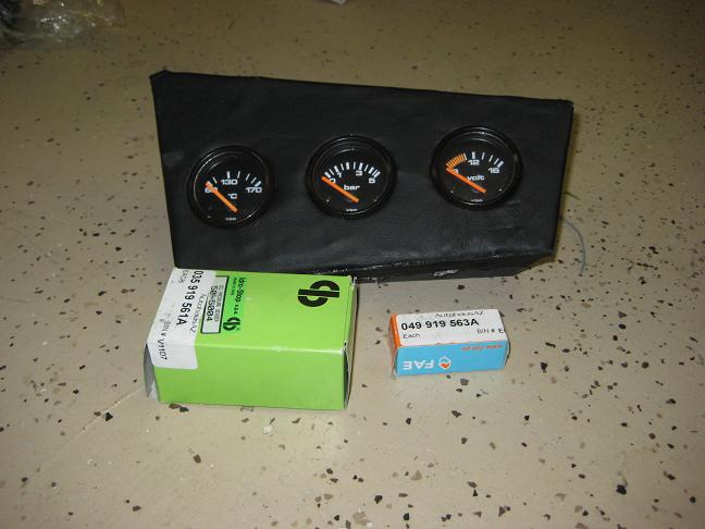* E30 VDO Gauge set: Oil Temp, Oil Pressure, Volts. Includes NEW senders and leather-trimmed center console mount. Ready to install into E30 center panel in front of ashtray. VDO gauges are out of a 1980’s Audi Quattro but the Senders are new. Price cut... $65, the senders cost that much!