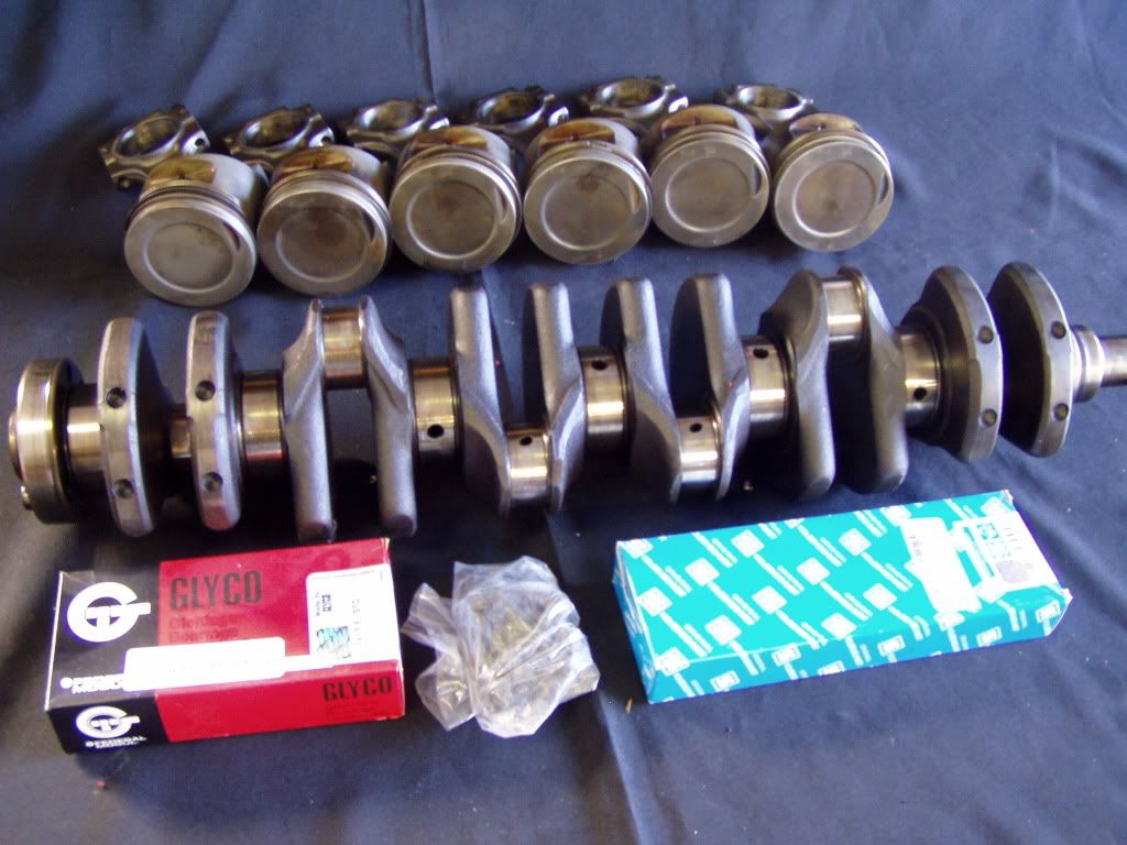 -=SOLD=- This is a forged crank from a 524td. It's Std. - Std. The pistons are the Euro 2.7 eta ones with 10.2 to 1 compression and they are .50MM oversize. You can have the overbored block if you come and get it off an engine stand in my garage. The block is great, I just don't want to ship it. I'll throw in the pan and oil pump also. New main & rod bearings are standard. New rod bolts are included. The rings are fine.
