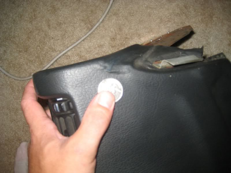 Dashboard - good shape overall, two small problem areas...one small crack at the back left corner of the rectangular inset portion, one slightly buckled area at left most portion of dash. Pics show both imperfections, with a quarter as size reference. All ducting still attached & included!