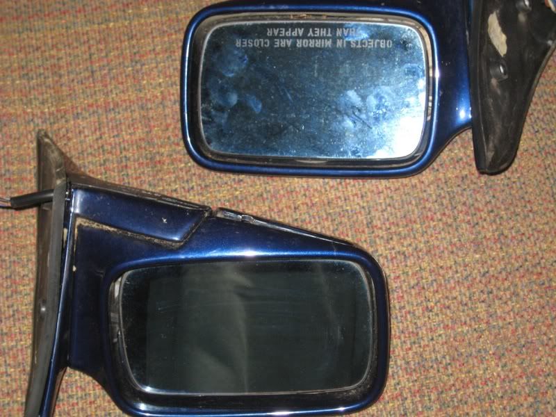 Pair of maritusblau exterior mirrors - electrical connectors are intact and includes the rubber gaskets for mounting to the door. Glass is intact, great condition with no cracks or hazing. Passenger side mirror has scrape on it pictured with quarter for size reference - $30 SOLD