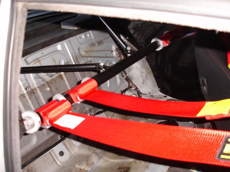 The harness bar was custom fabricated for the e30 m3 (using my e30 m3) and designed to mount directly to the B pillar and tie into the rear seatbelt mounting position, using the existing two mounting holes. This is a one of a kind harness bar. You will not find anything like it, unless you have a cage builder replicate this one.