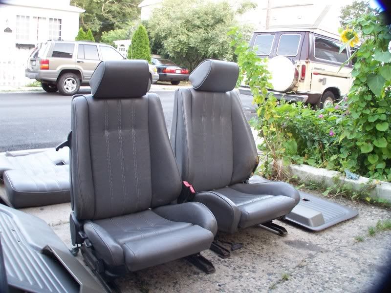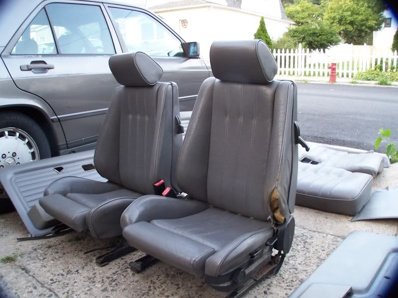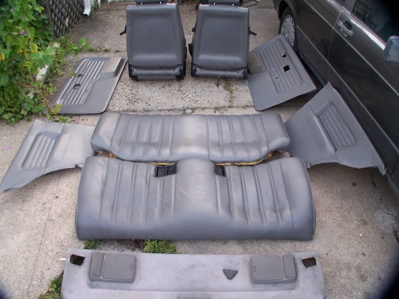 Complete gray leather interior with front sport seats with the rear seats.. the driver seat has an small rip on the typical place. All four color matching door panels and handles and the rear dash with speakers.